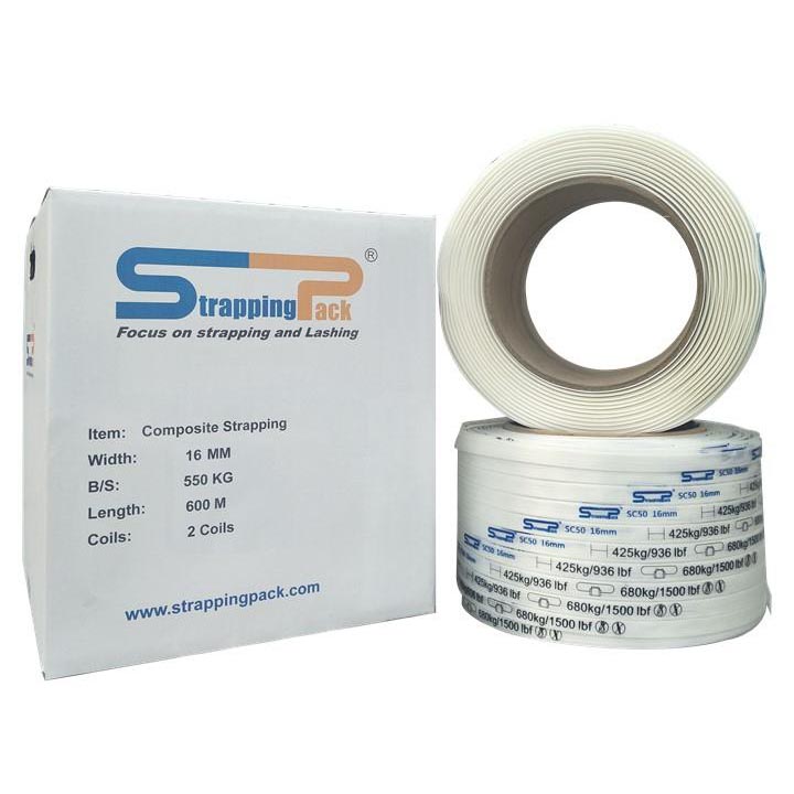 Composite cord strapping and hot melt cord strapping: It is composited by high tanacity polyester yarn and PP glue, the breaking strength is the same as the steel strapping, it is stronger than PP strapping and PET strapping, the enlongation is less than 13% and easy to contionue tight, foft and yearrs aging, the shock resistance and bending resistance is the best. it is easier and safer than steel strapping, PP strapping, PET strapping.