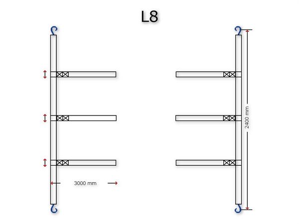 Container Lashing 32 mm, 3x3 mts, horizontal lashings are movable in height to the vertical lashings, height 2.4 mts