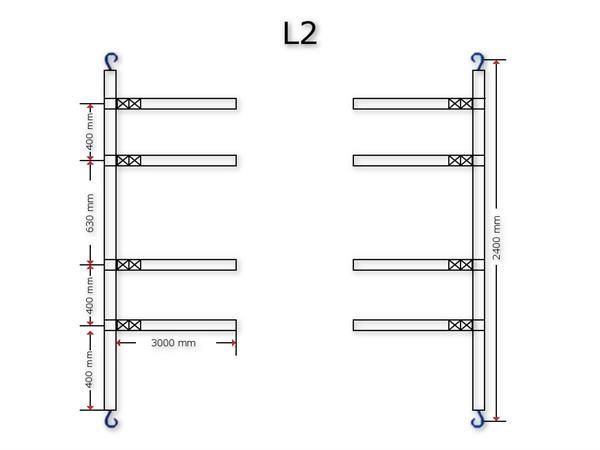 Container Lashing 32 mm, 2x3 mts, horizontal lashings are movable in height to the vertical lashings, height 2.7 mts