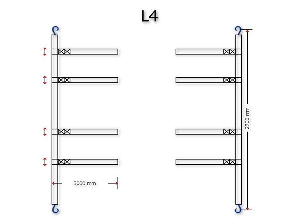 Container Lashing 32 mm, 4x3 mts, horizontal lashings are movable in height to the vertical lashings, height 2.7 mts